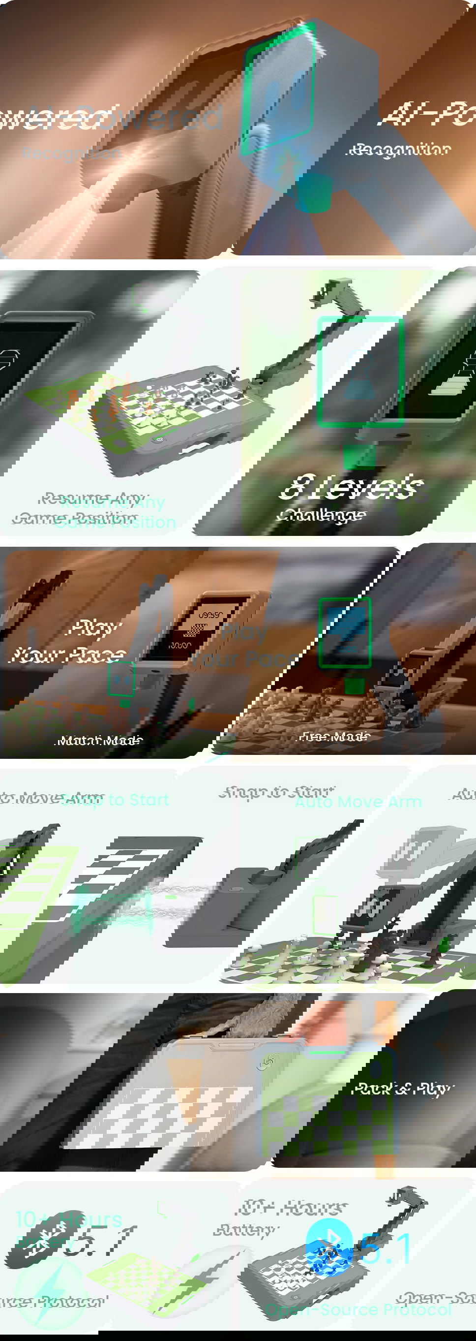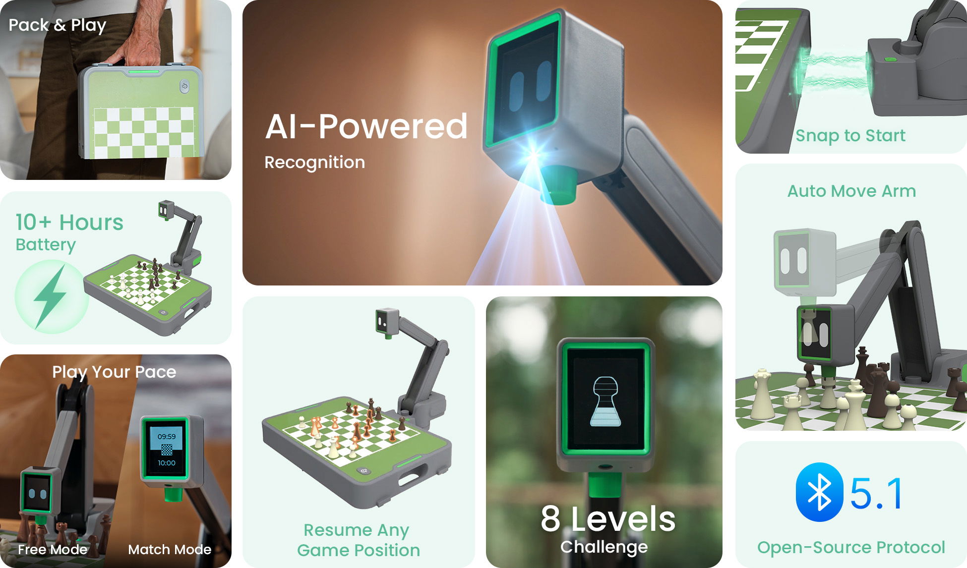 Cynus’s AI-powered camera can detect piece positions instantly. Want to start from mid-game or practice endgames? No problem—no resets needed.